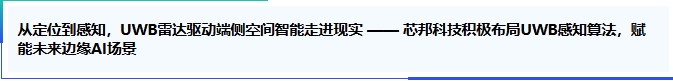 在這一全球趨勢(shì)帶動(dòng)下,芯邦科技也正積極推進(jìn) UWB 雷達(dá)在端側(cè)空間智能領(lǐng)域的算法研發(fā),聚焦于高魯棒(抗干擾與環(huán)境適應(yīng))、低功耗、可嵌入(適配邊緣化設(shè)備)的邊緣部署能力。